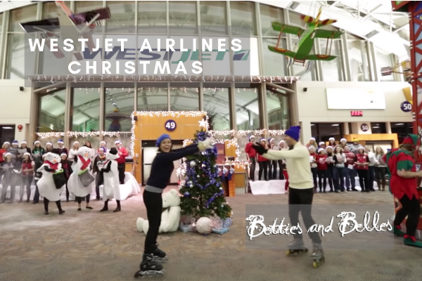 In December of 2012, WestJet Airlines surprised their passengers waiting for a red-eye flight with a Christmas flash mob. An announcement at the Calgary airport offered its guests an alternative flight to the North Pole. Elves, snowmen, and carolers delivered quite the holiday experience. Even Santa made an appearance on one of the airport’s golf carts, spreading cheer and passing out presents.
